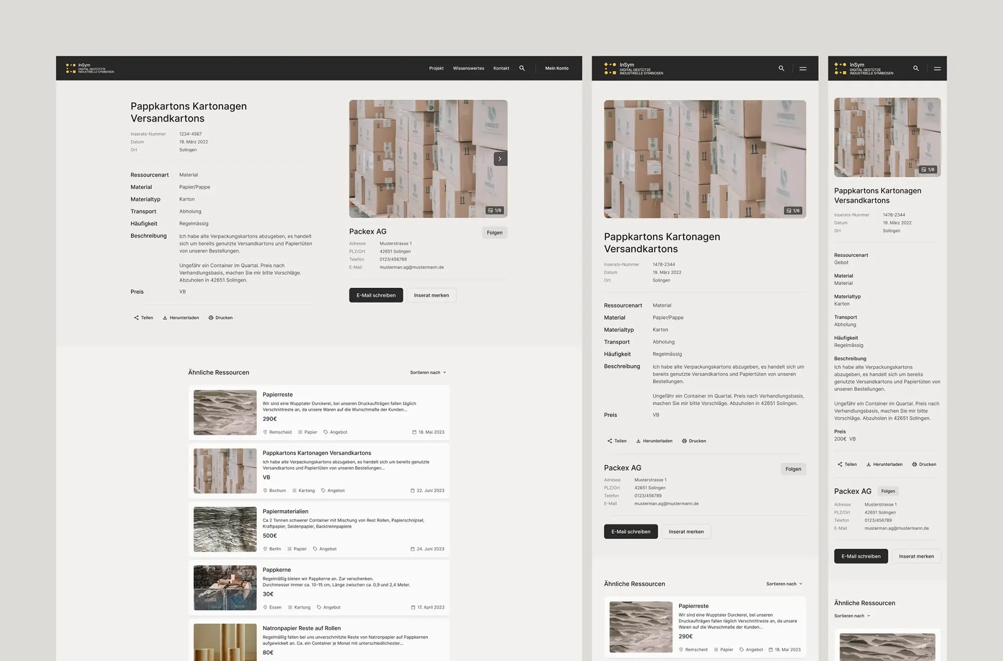 Designed sustainable platform connecting industries to exchange residual materials. Created intuitive interface with earth-inspired aesthetics that simplifies complex industrial transactions, supporting circular economy and waste reduction goals.